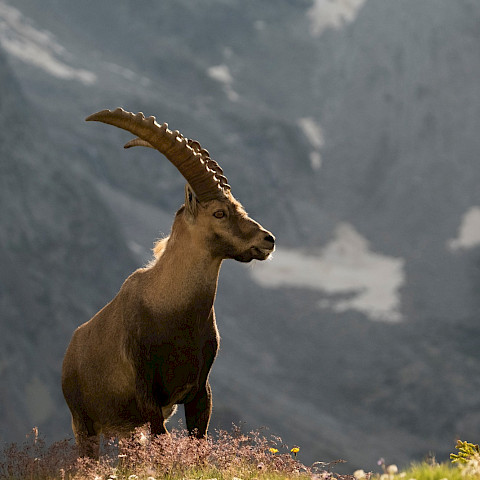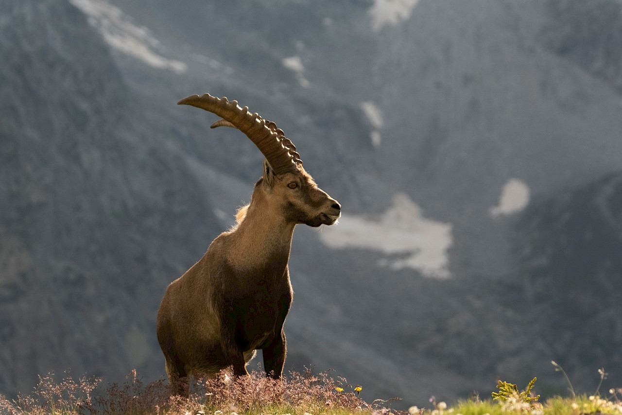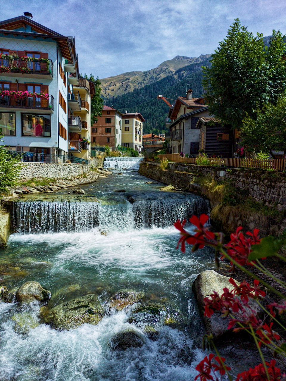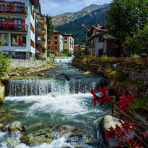 Kukkaloistoa, kaatosadetta ja Alppi-maisemia