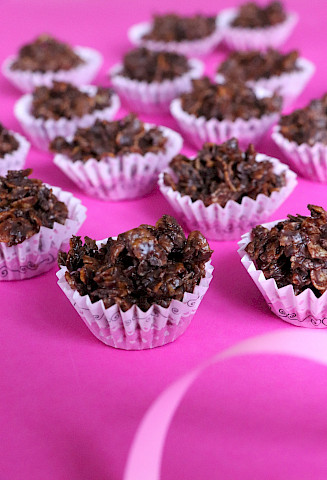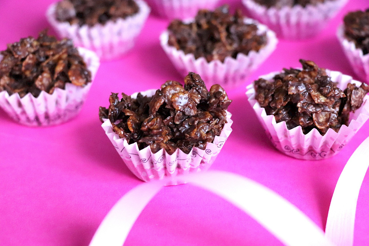* Suomen kauppojen valikoimista löytyy vain muutama gluteeniton riisimuro (tieto 4/2026). Kokeilimme ja korvasimme reseptissä riisimurot gluteenittomilla maissihiutaleilla (corn flakes). Murustele maissihiutaleita hieman pienemmiksi käsin kulhossa niin, että lopulta niitä on sama määrä eli 7 dl.
