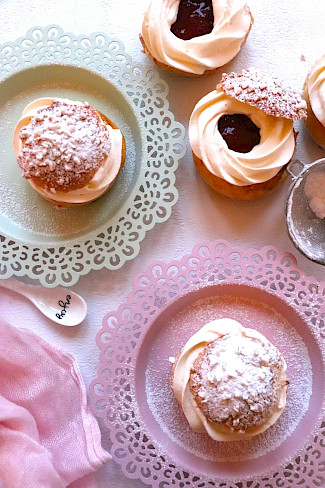 Vinkki 1: Valmista vaihteeksi täyte pähkinäkaakaolevitteestä: jätä hillo pullan välistä pois ja lisää kermavaahdon sekaan pähkinäkaakaolevitettä.