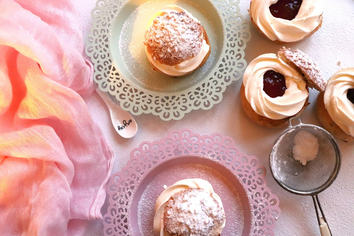 Vinkki 1: Valmista vaihteeksi täyte pähkinäkaakaolevitteestä: jätä hillo pullan välistä pois ja lisää kermavaahdon sekaan pähkinäkaakaolevitettä.