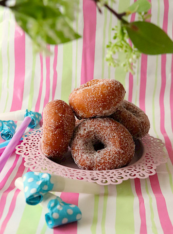 Paina jauhotetulla sormella reikä pullien keskelle ja suurenna reikää varovasti sormin. Kuumenna öljy isossa padassa tai paksupohjaisessa kattilassa. Kokeile öljyn lämpötila pienellä taikinapalalla: rasva on tarpeeksi kuumaa, kun pala ruskistuu kauniin väriseksi noin minuutissa. Nostele varovasti rinkilöitä kuumaan öljyyn. Paista kullanruskeiksi ja nosta valmiit munkit reikäkauhalla talouspaperin päälle. Pyörittele lämpimät munkit sokerissa.