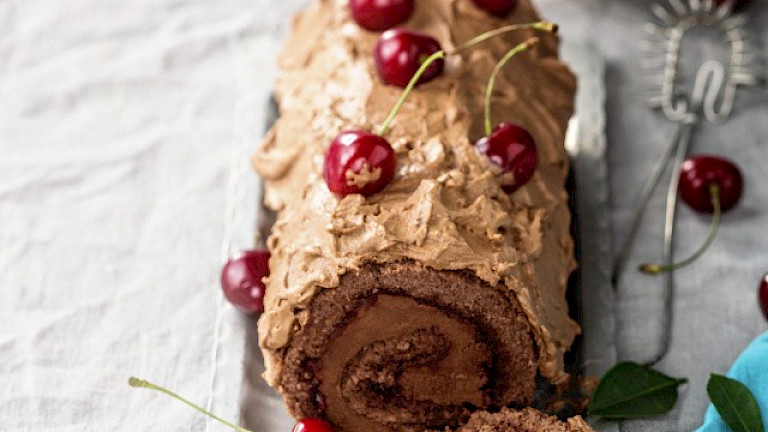 Pehmeän täyteläinen kääretorttu, jonka täytteenä on suklaata, mascarpone-juustoa ja marmeladi.